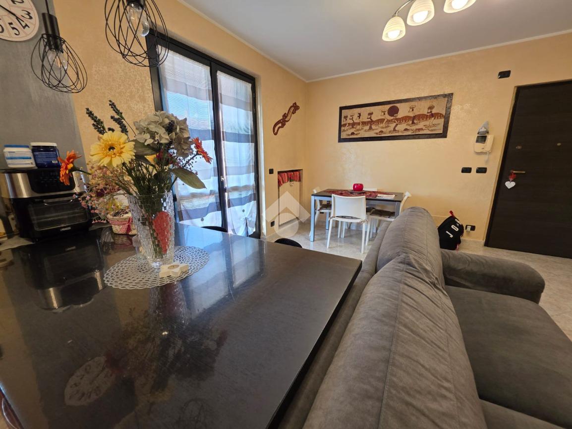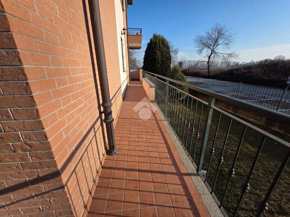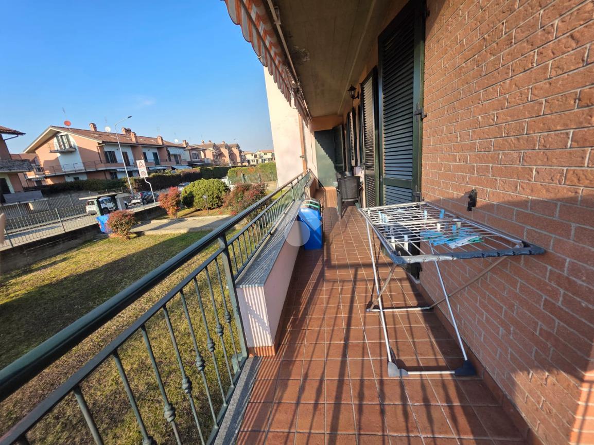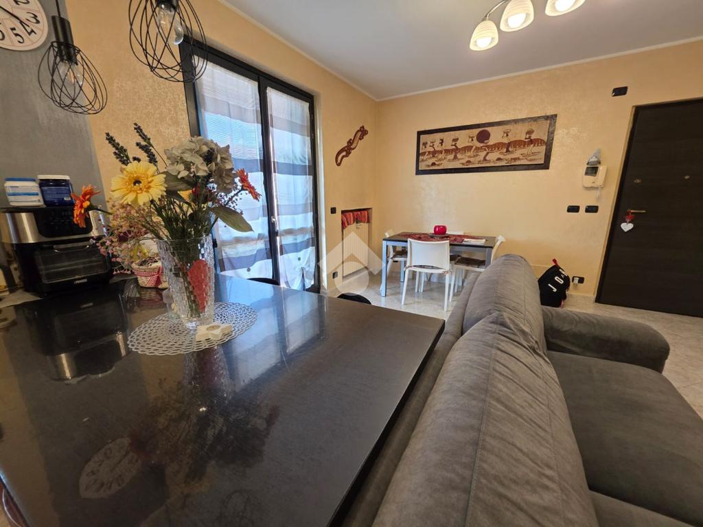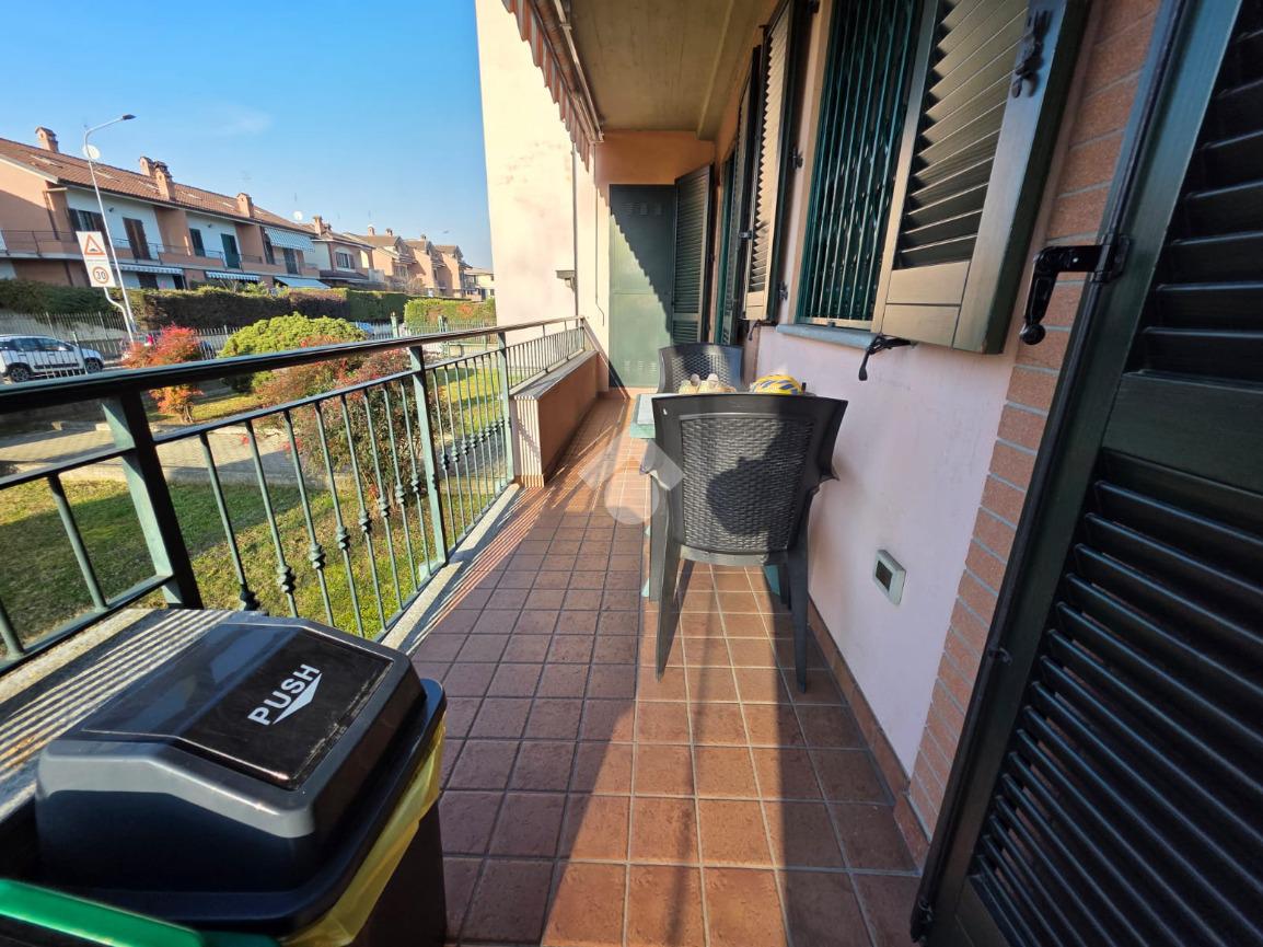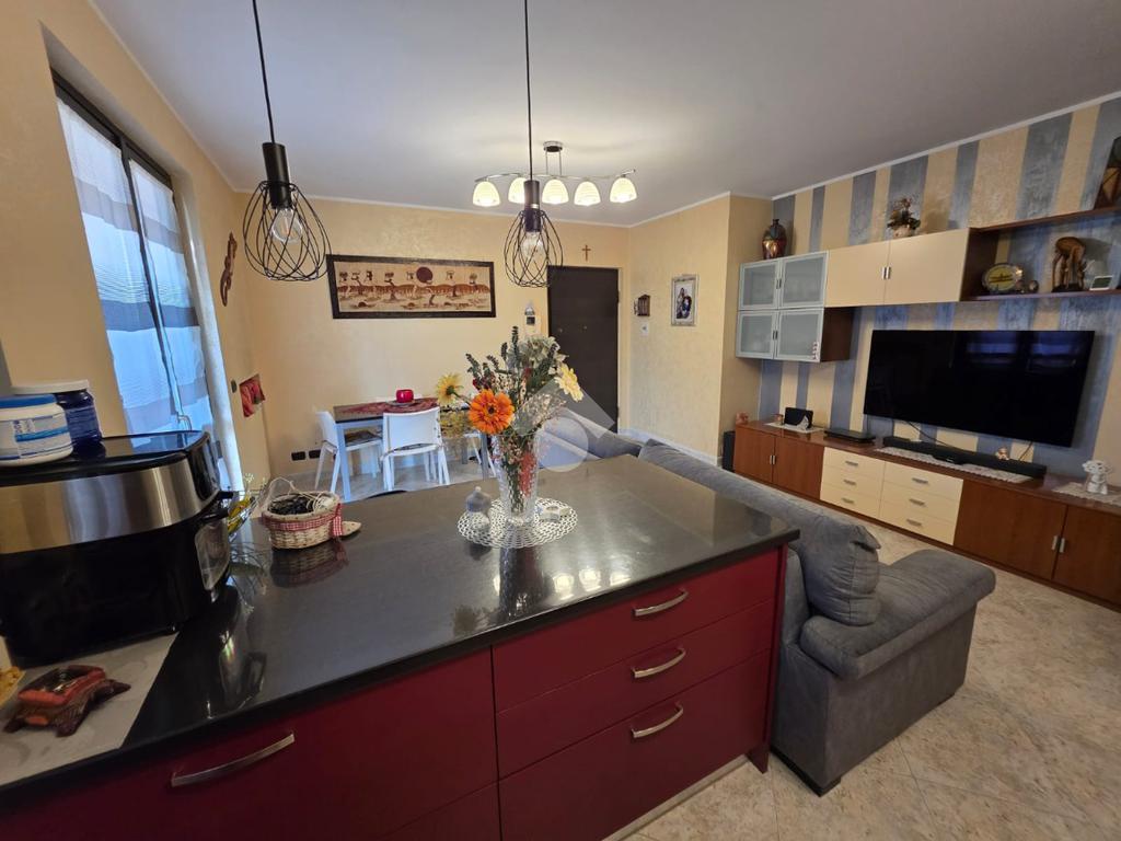 La palazzina è comoda alle scuole e al supermercato, è di recente costruzione. L'appartamento è al piano rialzato, la porta di ingresso affaccia sulla zona giorno living ampia e luminosa, qua è presente sia la zona salotto che la zona cucina con la penisola, gli spazi sono divisi bene. La zona giorno affaccia direttamente sul balcone già dotato di tende da sole. Il disimpegno divide la zona giorno dalla zona notte, qua le camere da letto sono due, una matrimoniale e una doppia per ragazzi; entrambe le camere hanno l'uscita sullo stesso balcone che fa il giro sui tre lati della casa. Il bagno è finestrato dotato di doccia di lavatrice e grazie alle dimensionni è possibile mettere anche l'asciugatrice. Al piano seminterrato il box auto è doppio in lunghezza e anche la cantina è ampia. Il riscaldamento è autonomo e inoltre sono presenti zanzariere e inferiate in tutte le porte finestre della casa.
