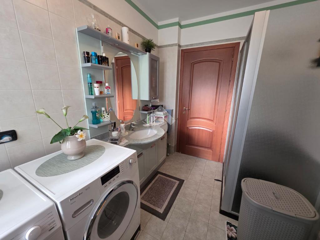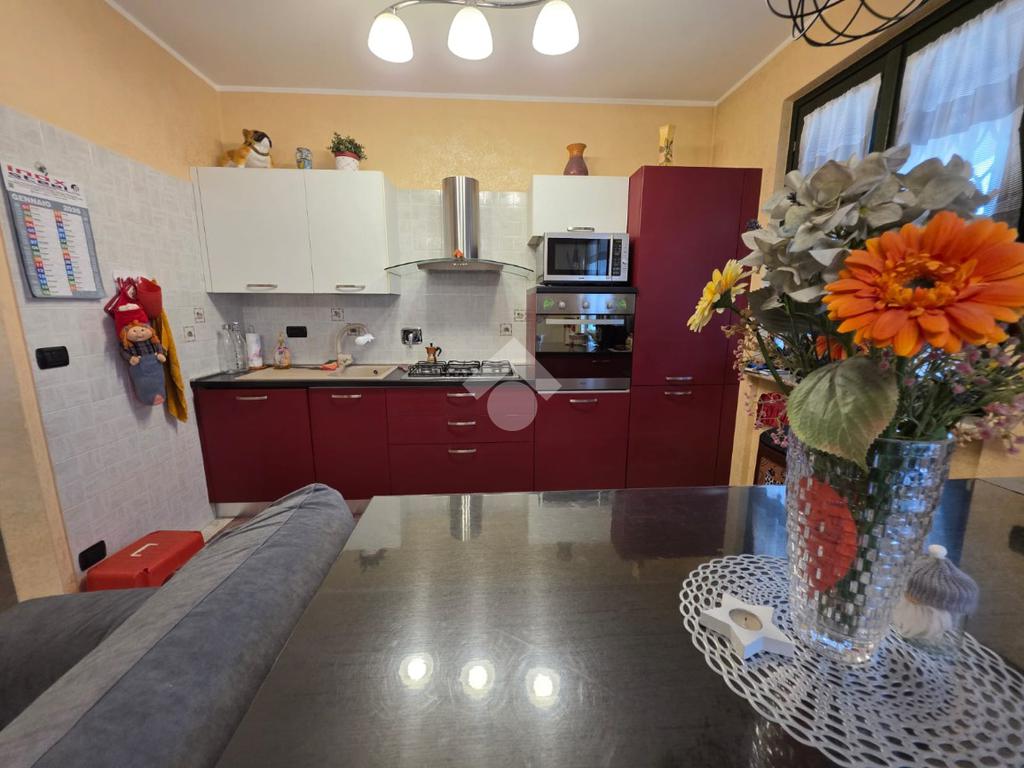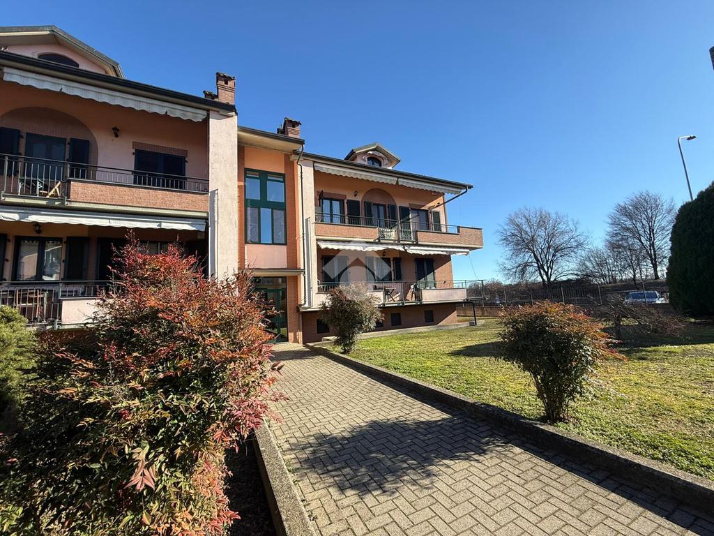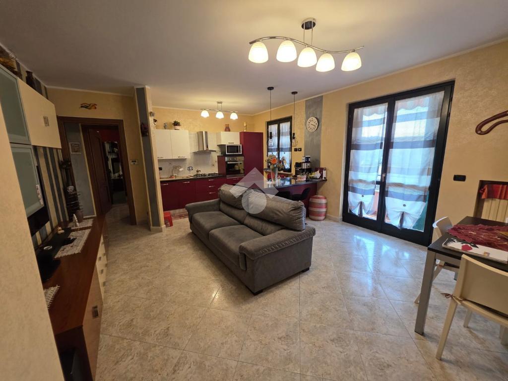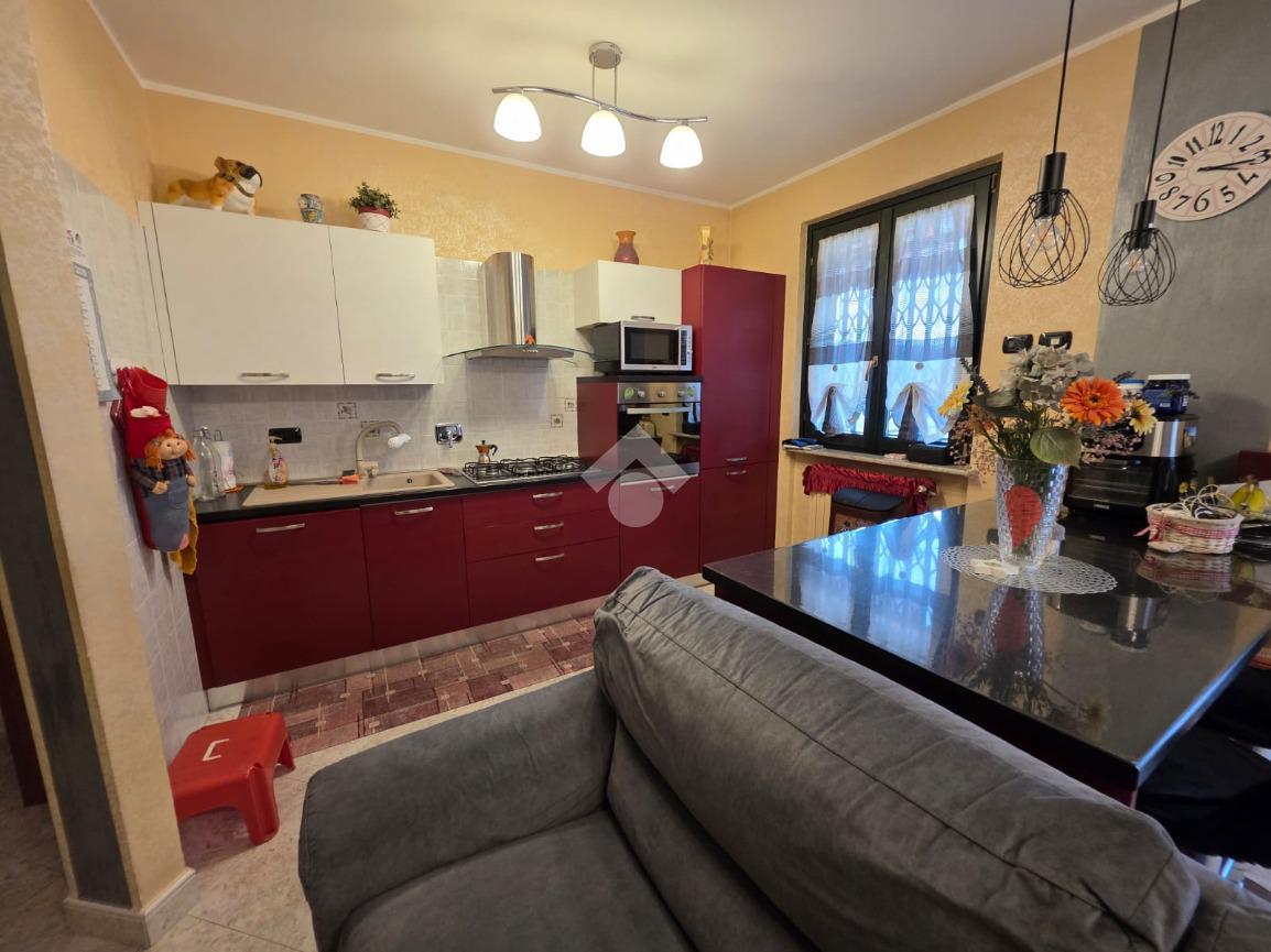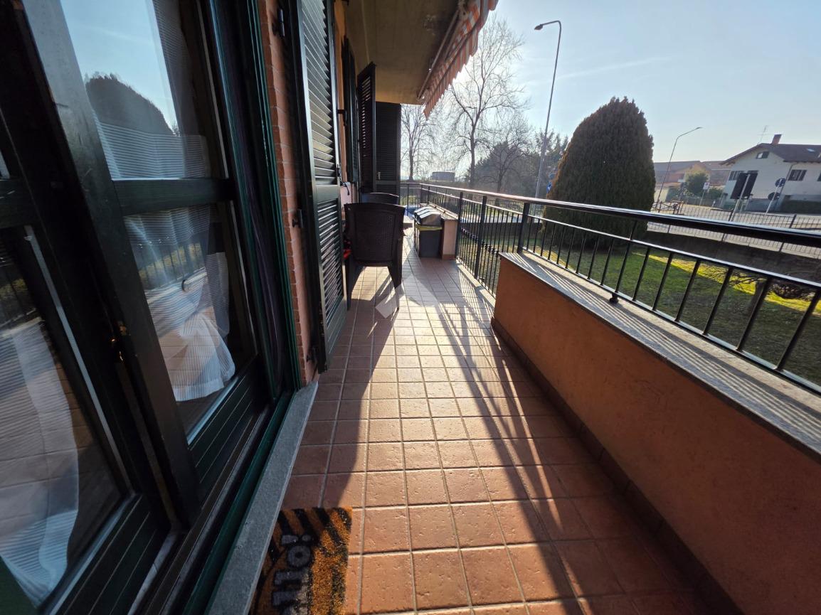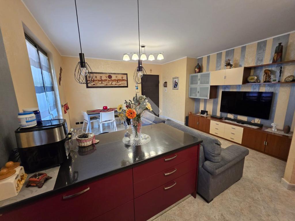 La palazzina è comoda alle scuole e al supermercato, è di recente costruzione. L'appartamento è al piano rialzato, la porta di ingresso affaccia sulla zona giorno living ampia e luminosa, qua è presente sia la zona salotto che la zona cucina con la penisola, gli spazi sono divisi bene. La zona giorno affaccia direttamente sul balcone già dotato di tende da sole. Il disimpegno divide la zona giorno dalla zona notte, qua le camere da letto sono due, una matrimoniale e una doppia per ragazzi; entrambe le camere hanno l'uscita sullo stesso balcone che fa il giro sui tre lati della casa. Il bagno è finestrato dotato di doccia di lavatrice e grazie alle dimensionni è possibile mettere anche l'asciugatrice. Al piano seminterrato il box auto è doppio in lunghezza e anche la cantina è ampia. Il riscaldamento è autonomo e inoltre sono presenti zanzariere e inferiate in tutte le porte finestre della casa.