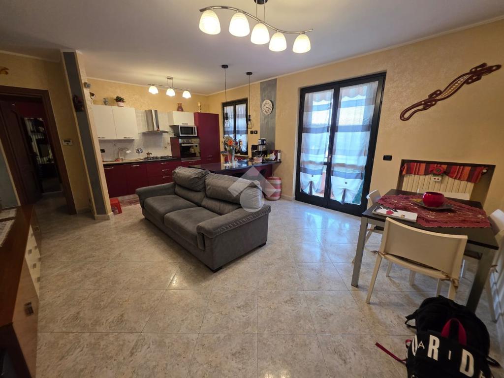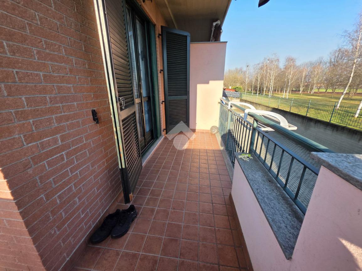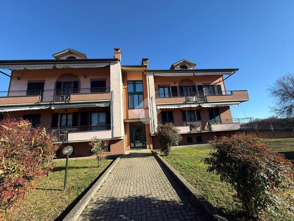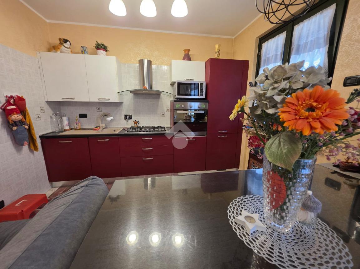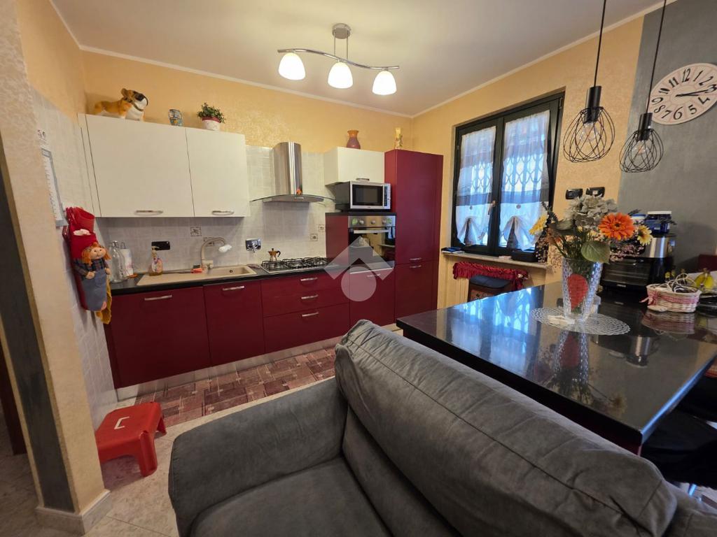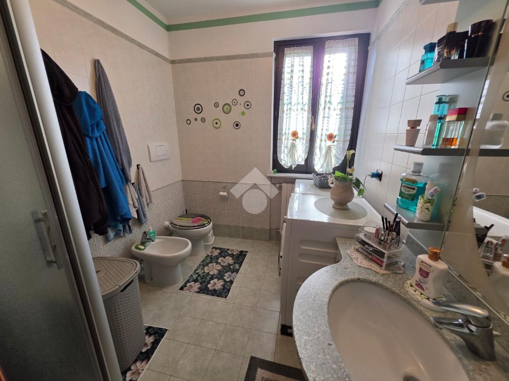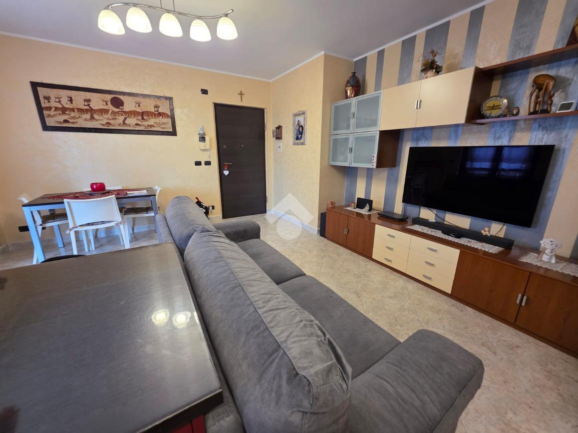 La palazzina è comoda alle scuole e al supermercato, è di recente costruzione. L'appartamento è al piano rialzato, la porta di ingresso affaccia sulla zona giorno living ampia e luminosa, qua è presente sia la zona salotto che la zona cucina con la penisola, gli spazi sono divisi bene. La zona giorno affaccia direttamente sul balcone già dotato di tende da sole. Il disimpegno divide la zona giorno dalla zona notte, qua le camere da letto sono due, una matrimoniale e una doppia per ragazzi; entrambe le camere hanno l'uscita sullo stesso balcone che fa il giro sui tre lati della casa. Il bagno è finestrato dotato di doccia di lavatrice e grazie alle dimensionni è possibile mettere anche l'asciugatrice. Al piano seminterrato il box auto è doppio in lunghezza e anche la cantina è ampia. Il riscaldamento è autonomo e inoltre sono presenti zanzariere e inferiate in tutte le porte finestre della casa.
