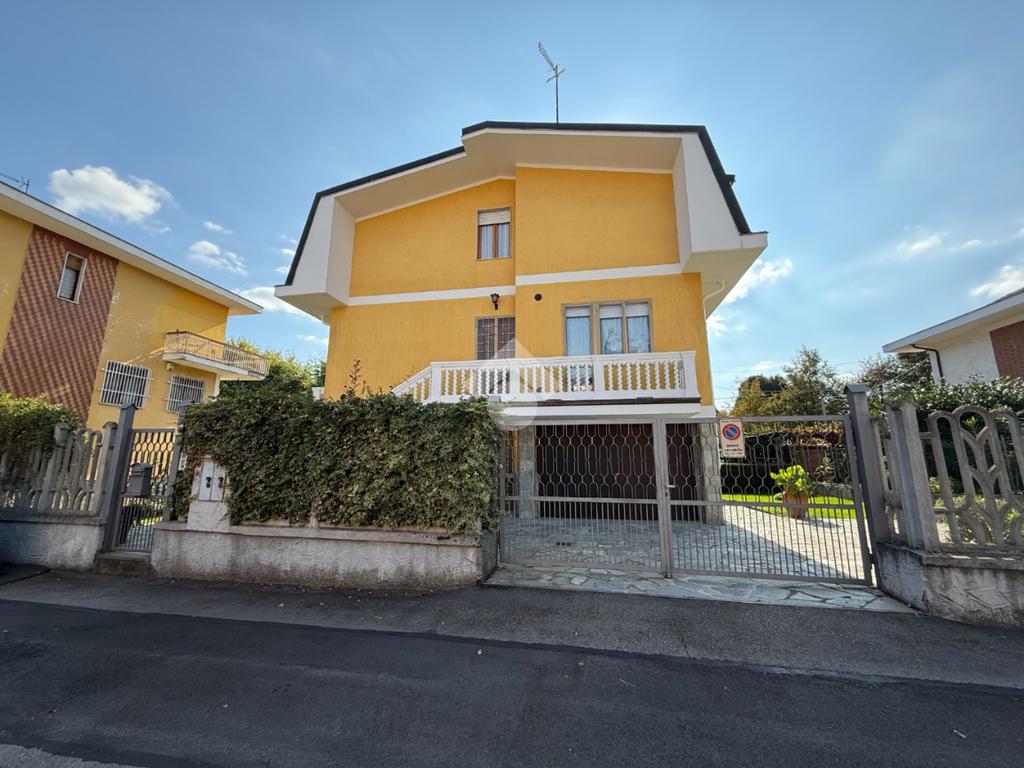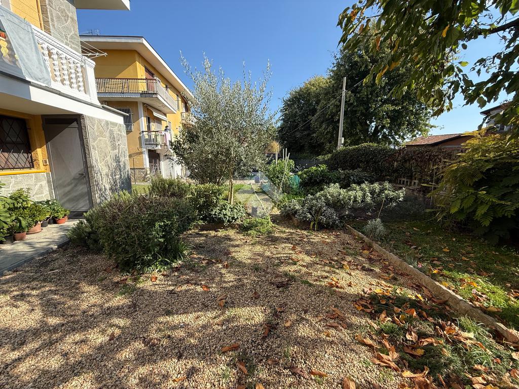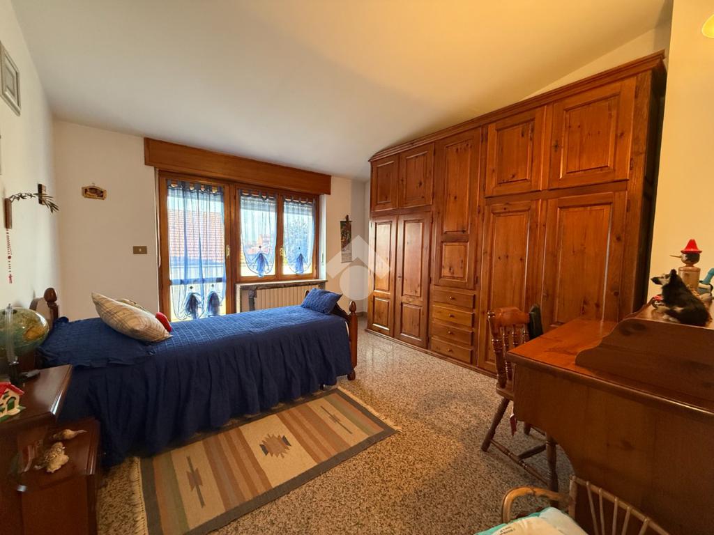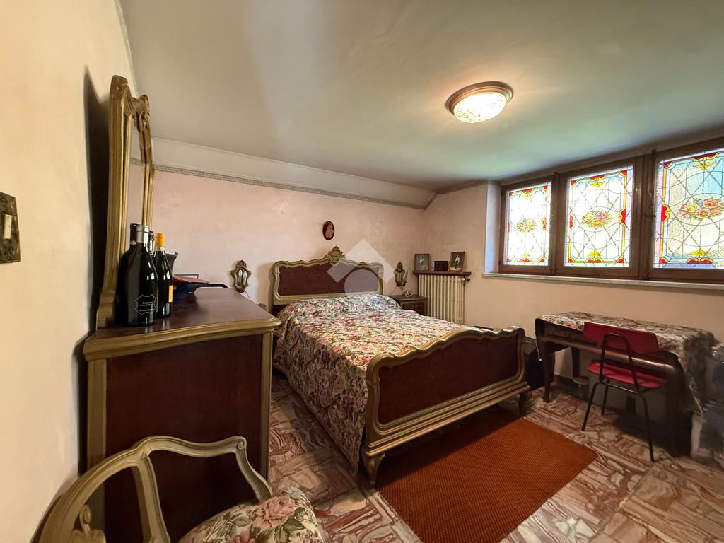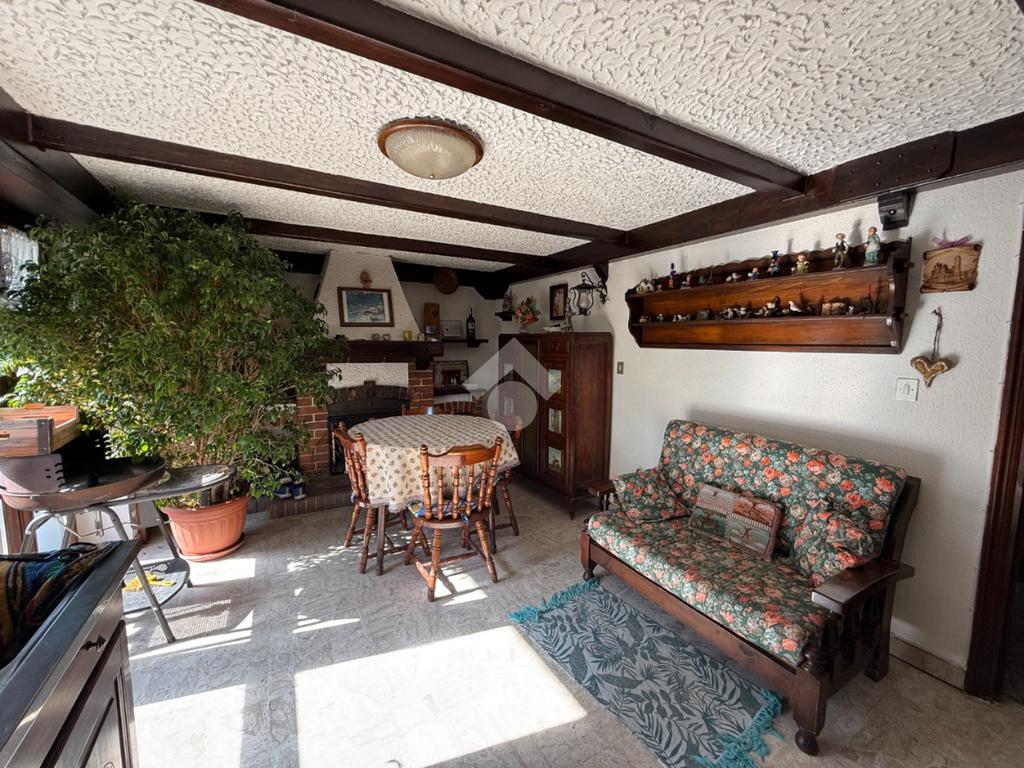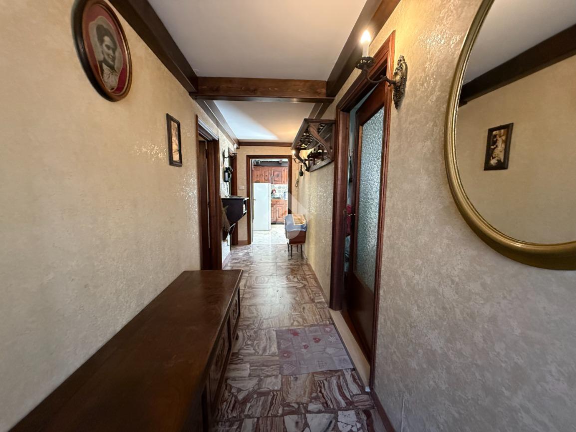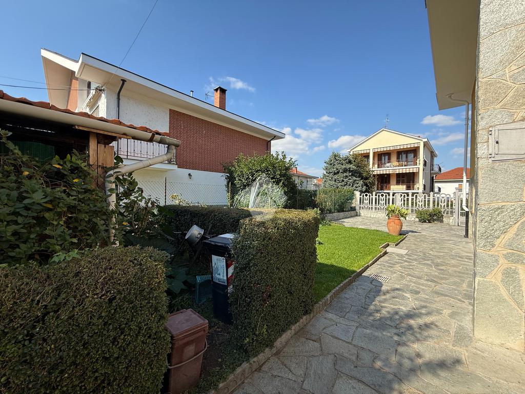 La casa è situata in centro paese e libera su quattro lati. Al piano terra è presente il box auto, una camera, bagno e taverna con camino e con accesso diretto al giardino verde privato. Al primo piano l'appartamento ha l'ingresso sul salotto che è diviso dalla cucina abitabile, le due camere, una ampia matrimoniale e una singola, il bagno è finestrato e dotato di attacco della lavatrice. Il secondo piano è raggiungibile sia dall'interno che dalla scala esterna, qua l'appartamento è mansardato, la cucina e il salotto sono divisi , le due camere da letto sono ampie e il bagno è finestrato.