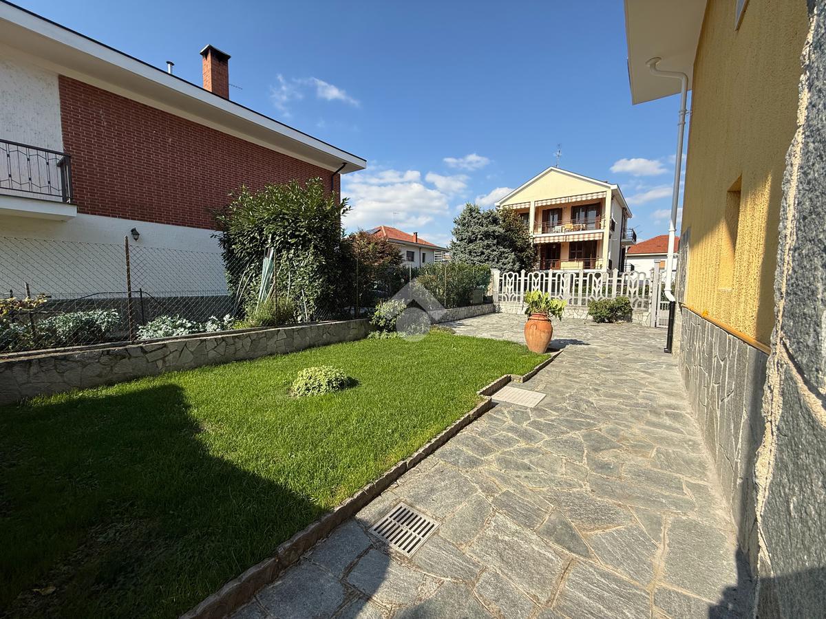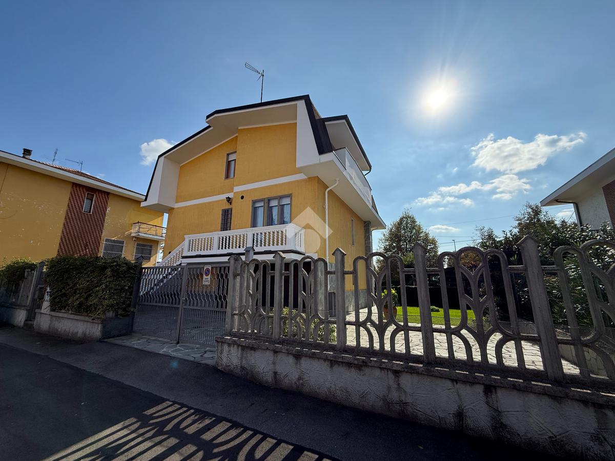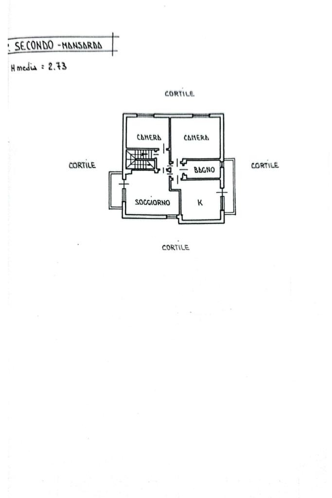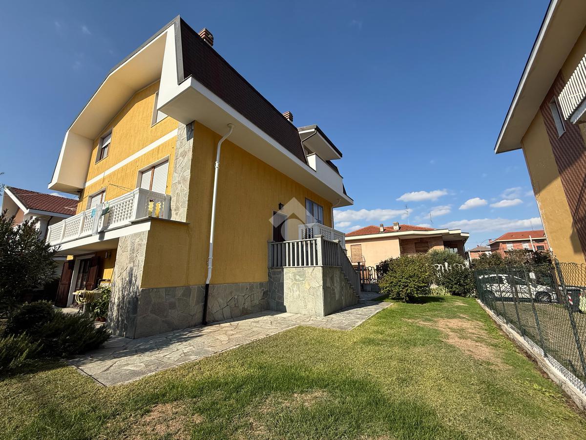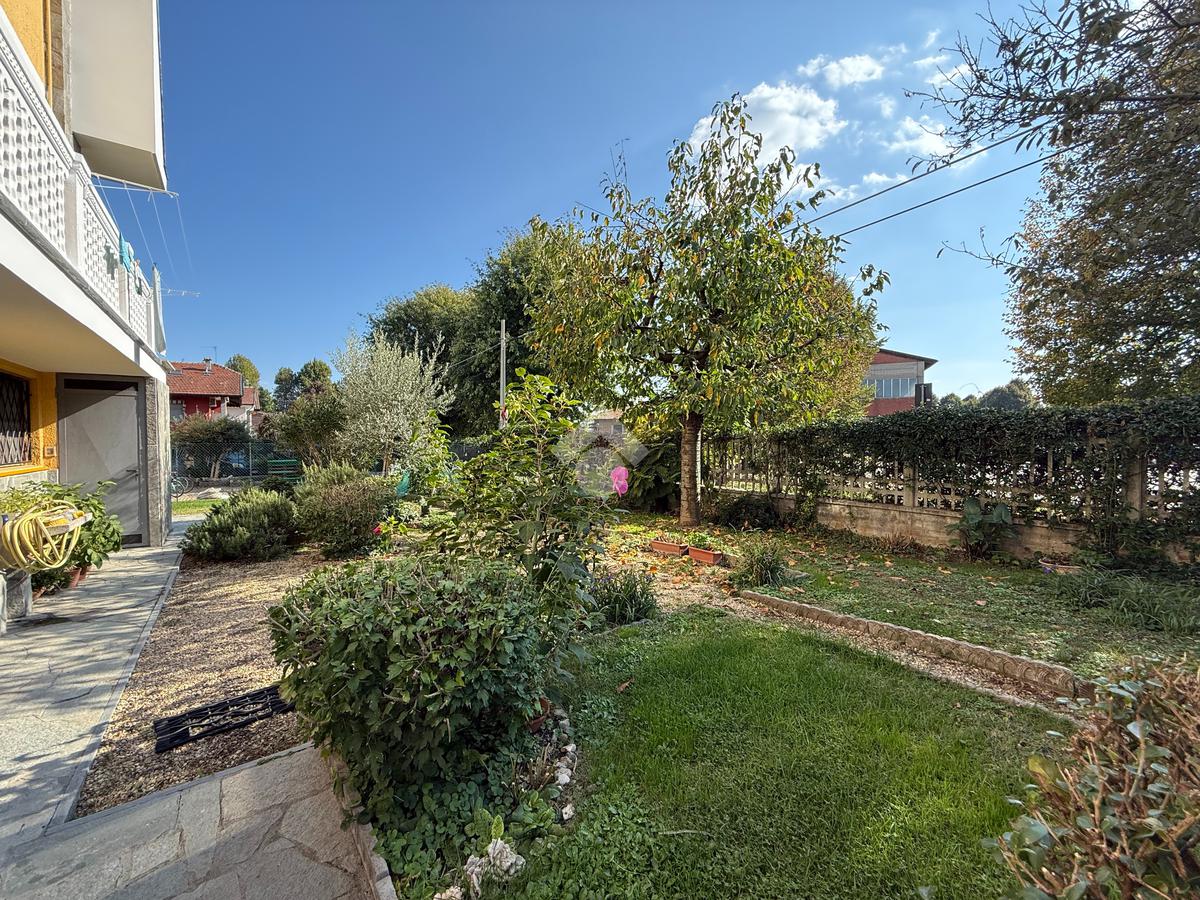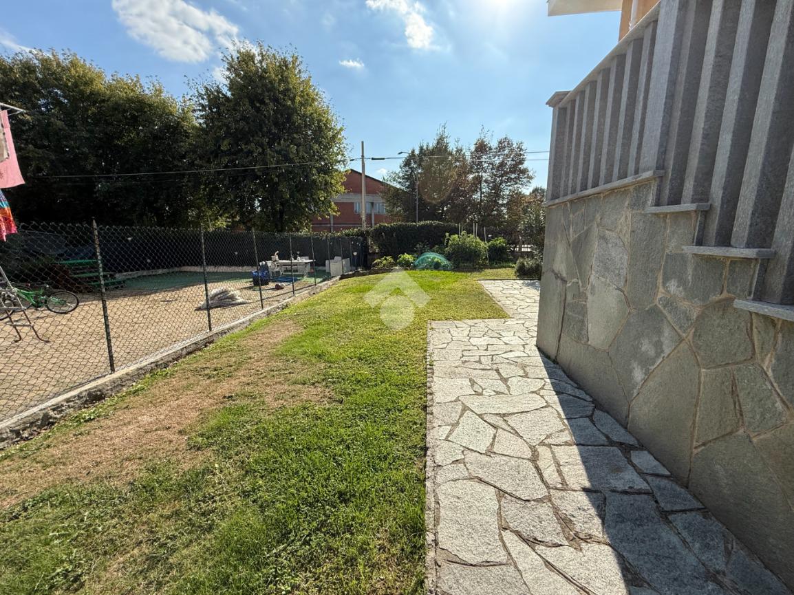 La casa è situata in centro paese e libera su quattro lati. Al piano terra è presente il box auto, una camera, bagno e taverna con camino e con accesso diretto al giardino verde privato. Al primo piano l'appartamento ha l'ingresso sul salotto che è diviso dalla cucina abitabile, le due camere, una ampia matrimoniale e una singola, il bagno è finestrato e dotato di attacco della lavatrice. Il secondo piano è raggiungibile sia dall'interno che dalla scala esterna, qua l'appartamento è mansardato, la cucina e il salotto sono divisi , le due camere da letto sono ampie e il bagno è finestrato.