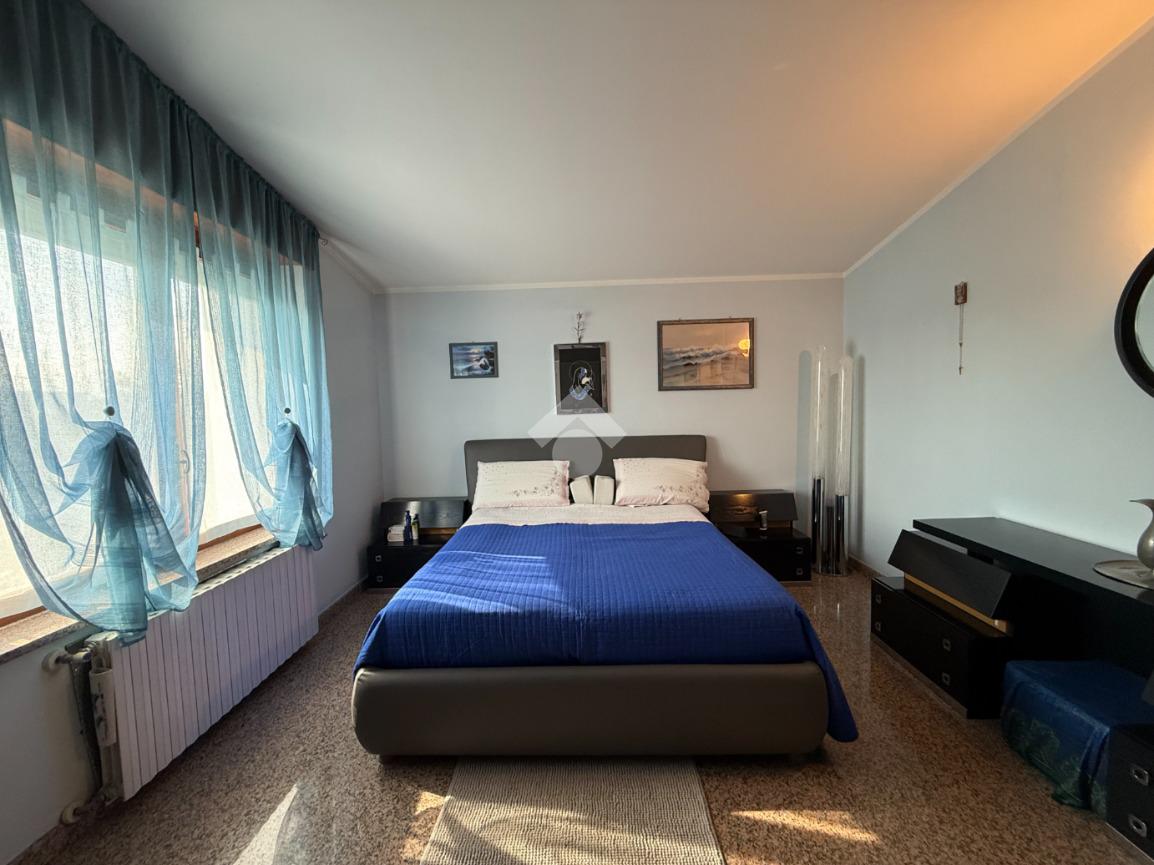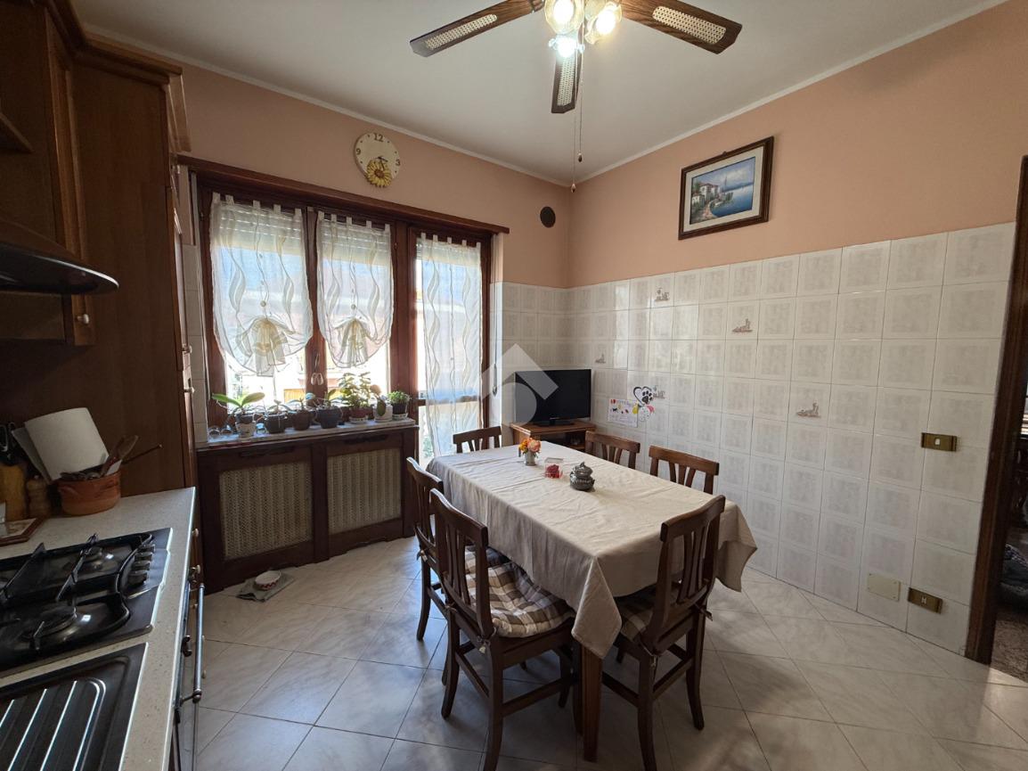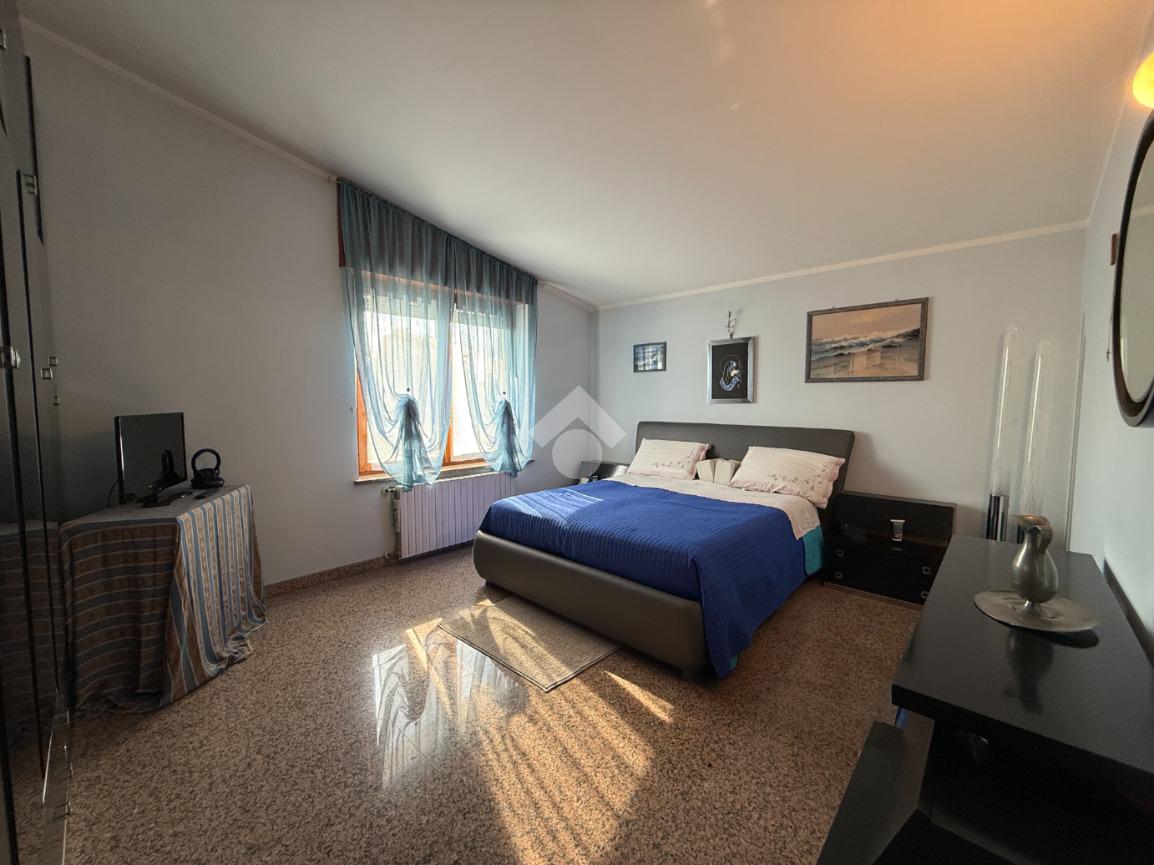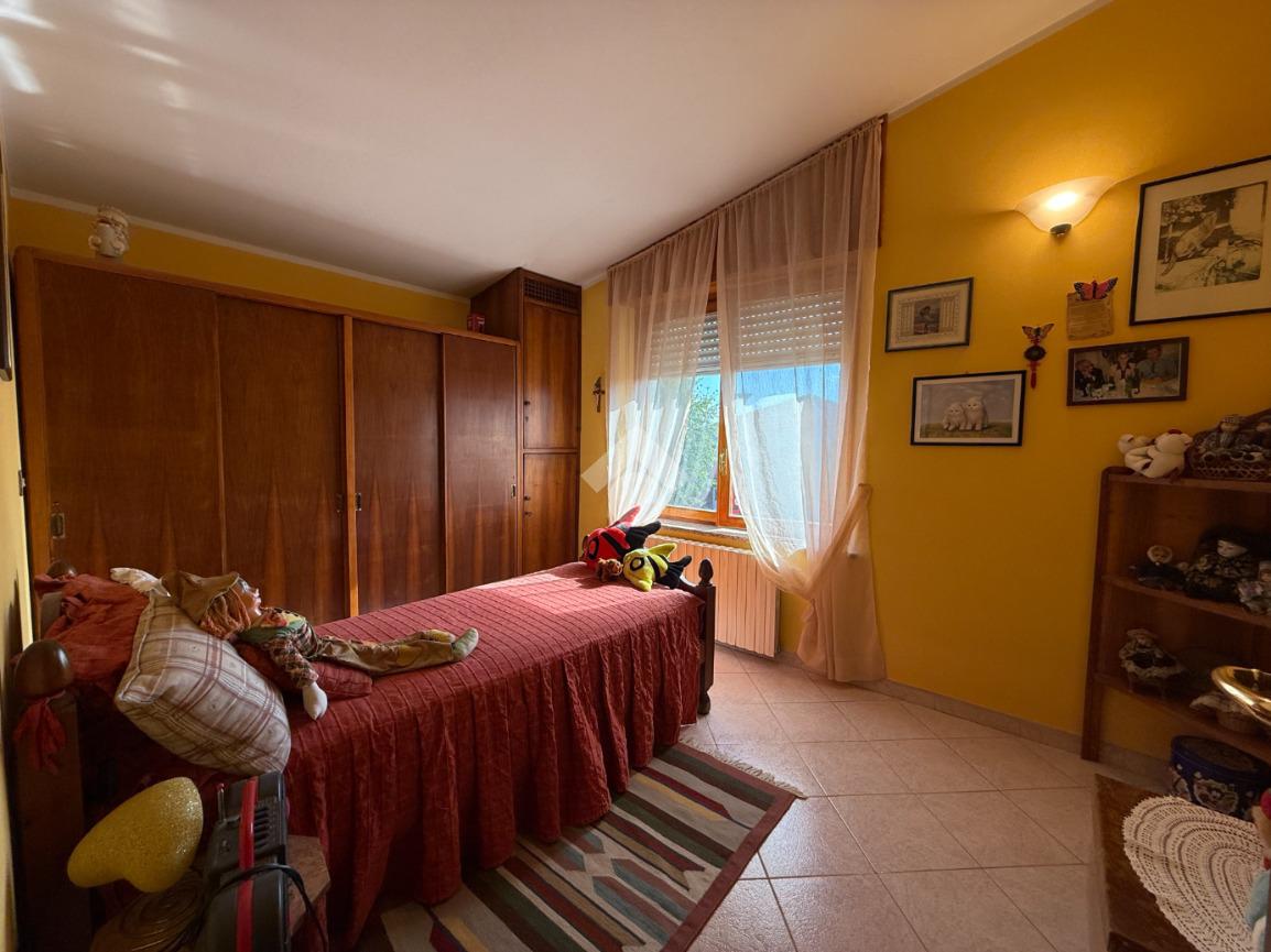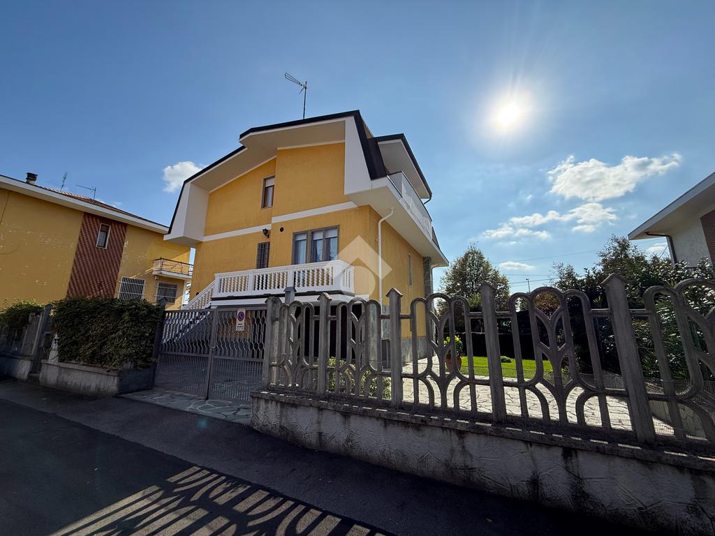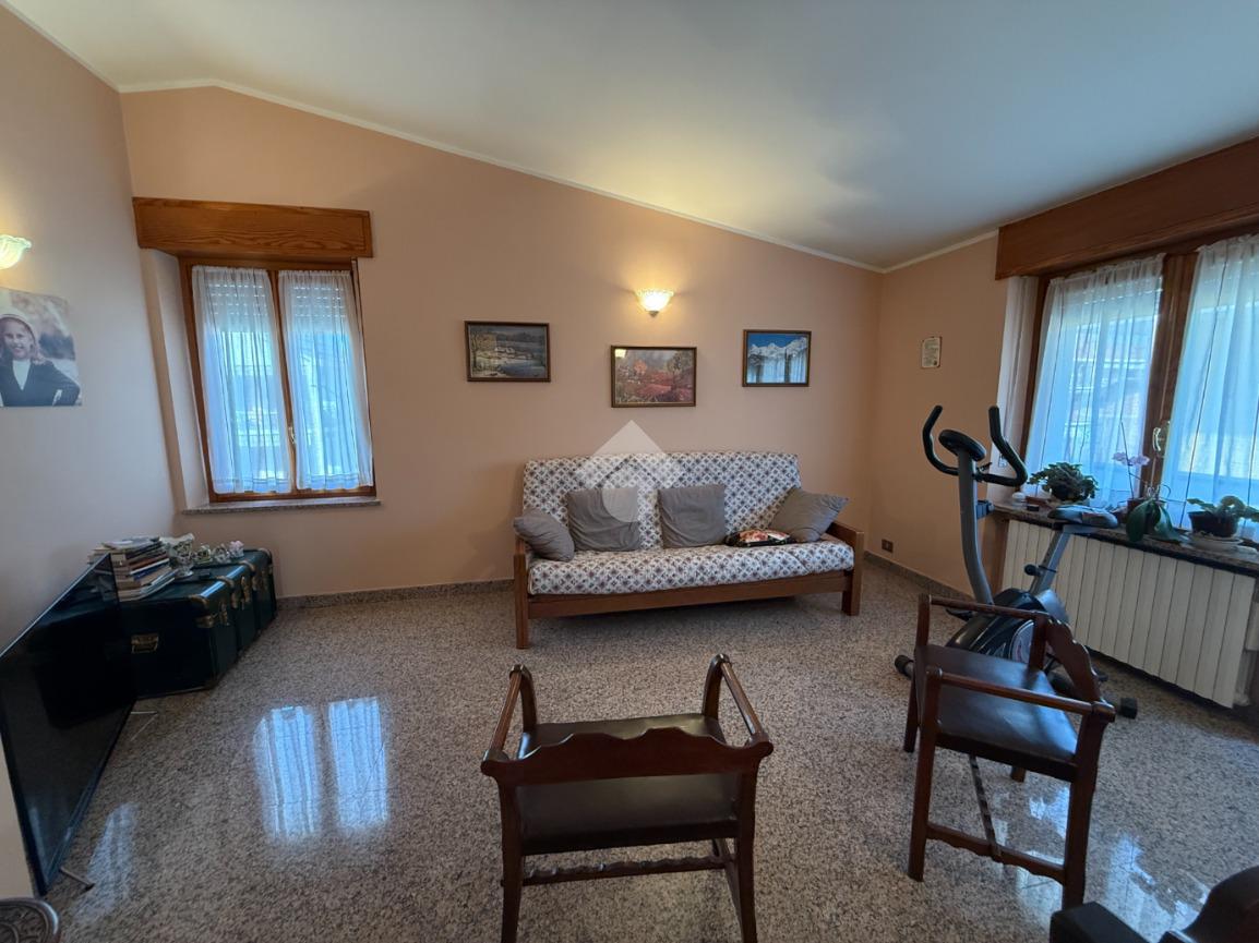La casa è situata in centro paese e libera su quattro lati. Al piano terra è presente il box auto, una camera, bagno e taverna con camino e con accesso diretto al giardino verde privato. Al primo piano l'appartamento ha l'ingresso sul salotto che è diviso dalla cucina abitabile, le due camere, una ampia matrimoniale e una singola, il bagno è finestrato e dotato di attacco della lavatrice. Il secondo piano è raggiungibile sia dall'interno che dalla scala esterna, qua l'appartamento è mansardato, la cucina e il salotto sono divisi , le due camere da letto sono ampie e il bagno è finestrato.