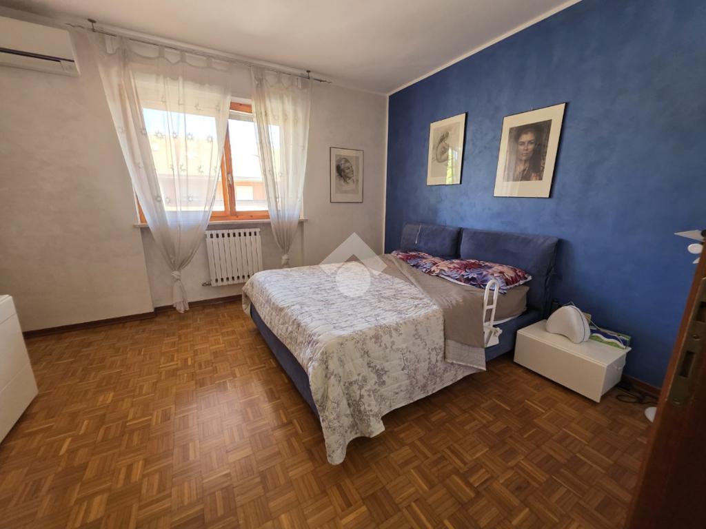 La villetta è situata nella zona dei poeti, zona residenziale, la via è chiusa permettendo una maggiore tranquillità ed è inoltre dotata di posti auto liberi. La villetta è libera su due lati, la porta di ingresso affaccia sul salotto che rimane diviso dalla cucina, il salotto è ampio e la cucina è abitabile, affaccia inoltre sul giardino privato dotato di zona barbecue. Il bagno è finestrato e dotato di lavatrice e asciugatrice. La scala accompagna alla zona notte, qua le camere da letto sono due, una matrimoniale e una singola. Il bagno della zona notte è finestrato e dotato di doccia. Il sottotetto è open space ed è possibile creare un ulteriore camera da letto, il bagno è dotato di doccia. Al piano seminterrato la tavernetta è utile per fare feste nei periodi invernali, la cantina è comoda da utilizzare come dispensa e il box auto è ampio, oltre a una macchina è possibile mettere scaffali. Il riscaldamento è autonomo e la caladaia è stata sostituita nel 2010. Nel sottotetto è stato fatto il cappotto interno e anche nel piano seminterrato. E' presente inoltre l'antifurto volumetrico.