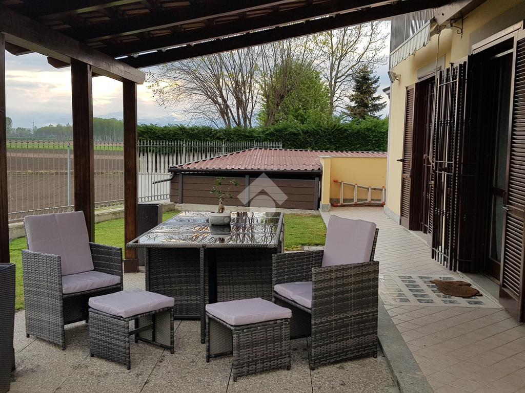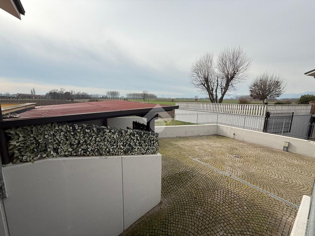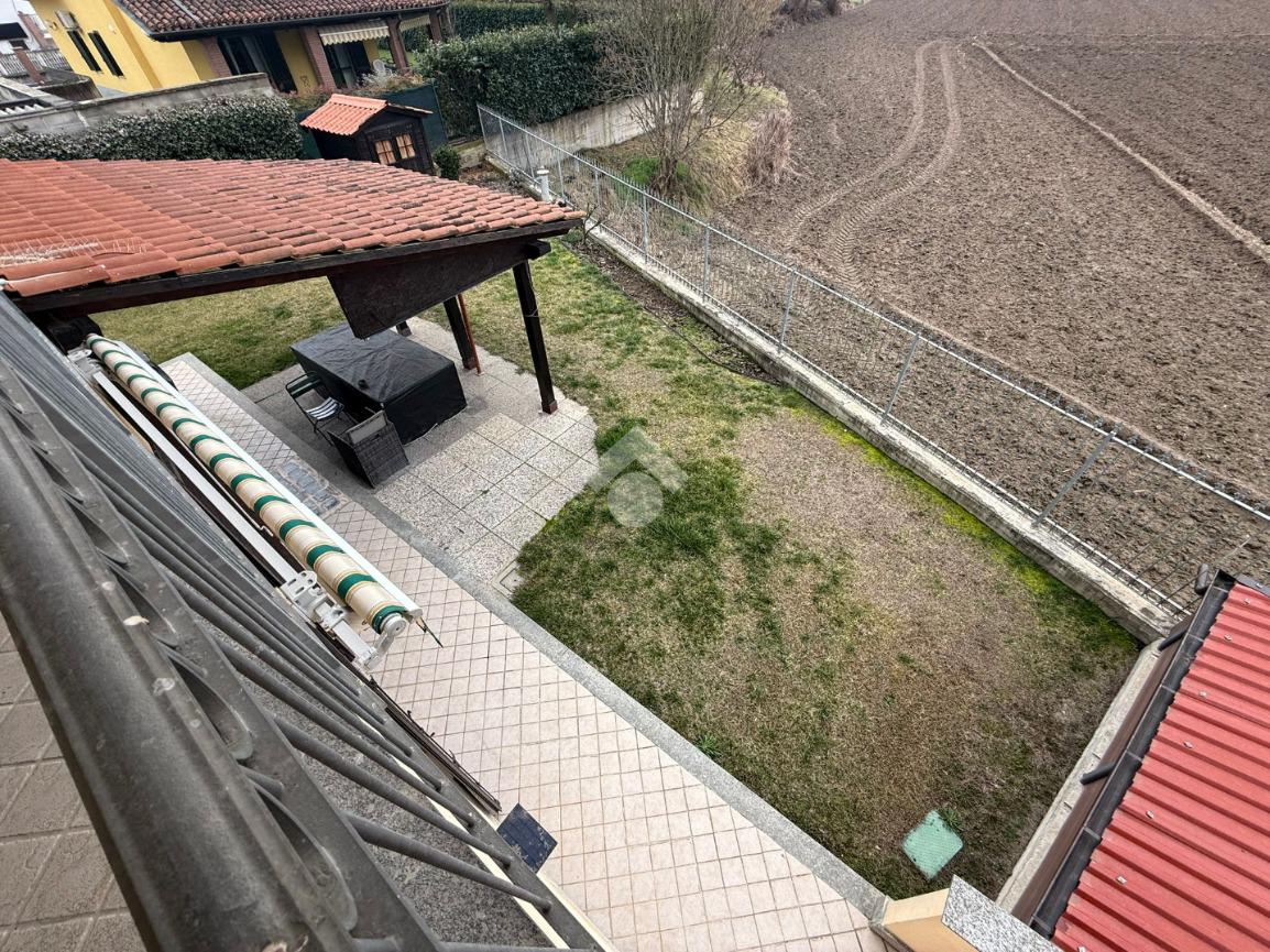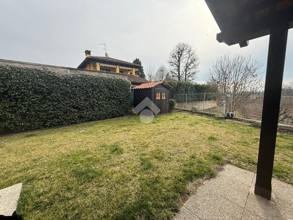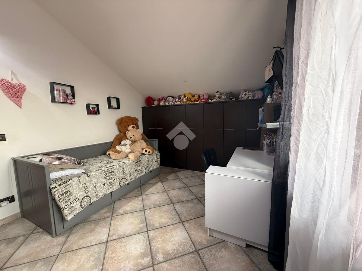 La villa è di recente costruzione e libera su tre lati. E' situata in una zona residenziale tranquilla e circondata dal verde. L'ingresso pedonale affaccia sul cortile privato e una scalinata accompagna alla porta di ingresso, quest'ultima affaccia sul salone ampio e luminoso dotato anche di camino, questo è diviso dalla cucina che è abitabile e spaziosa e dotata di accesso diretto al giardino con dehor, ottimo per mangiare fuori nei periodi più caldi. Al piano principale è presente anche una cameretta utilzzata come studio. Il bagno è finestrato e di servizio. Al piano primo la zona notte è dotata di tre camere da letto, un bagno e una lavanderia. La camera più ampia è matrimoniale e dotata di porta finestra che la collega direttamente al balcone. Le due camerette sono singole, una più ampia con l'accesso al balcone e una più piccola mansardata. Il bagno è finestrato e dotato sia di vasca che di doccia. Al piano seminterrato la taverna è ampia.